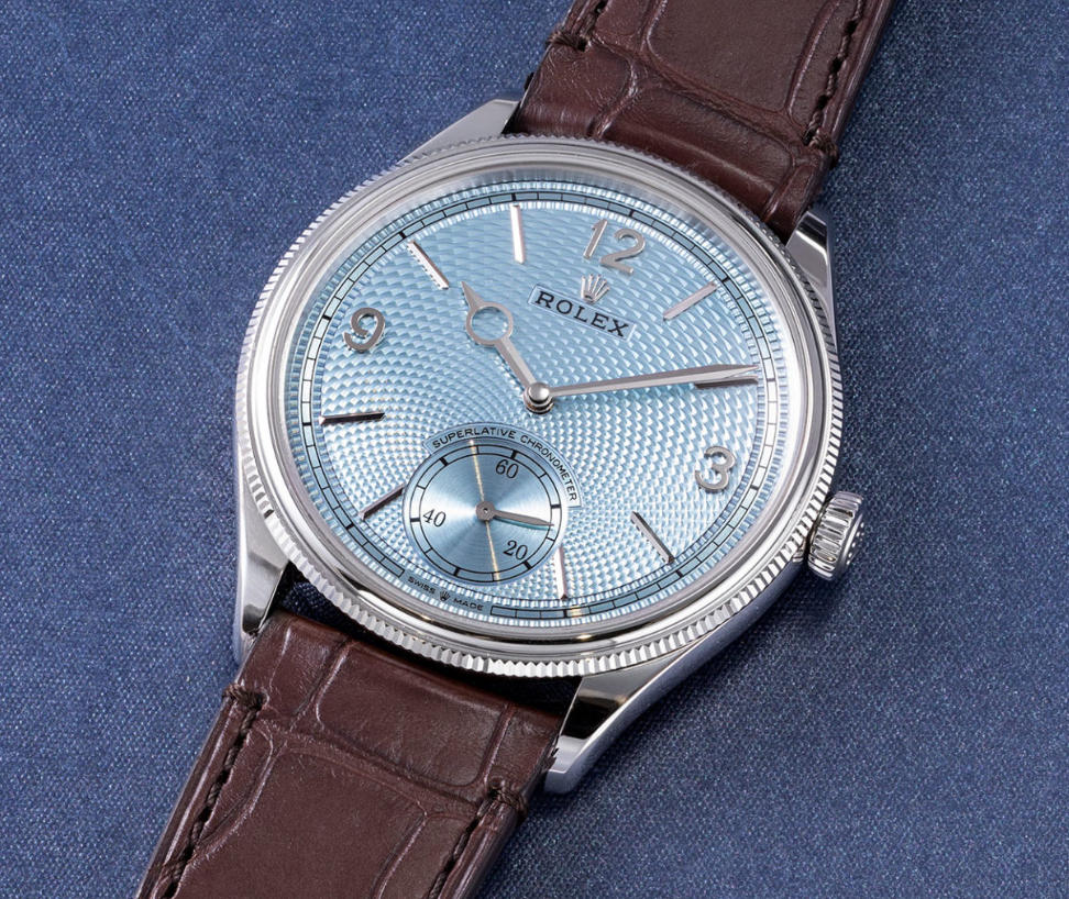 More generally, the platinum 1908 is also a notable product for Rolex. Though not the first time the brand has engine turned a dial, this continues something Rolex embarked upon last year with the hand-made cloisonné enamel dial of the Day-Date “Puzzle”. Though unlike the cloisonné dial that is in-house, the guilloché dial is done by an external specialist. I do like the direction, and I hope Rolex continues with such decorative dials.